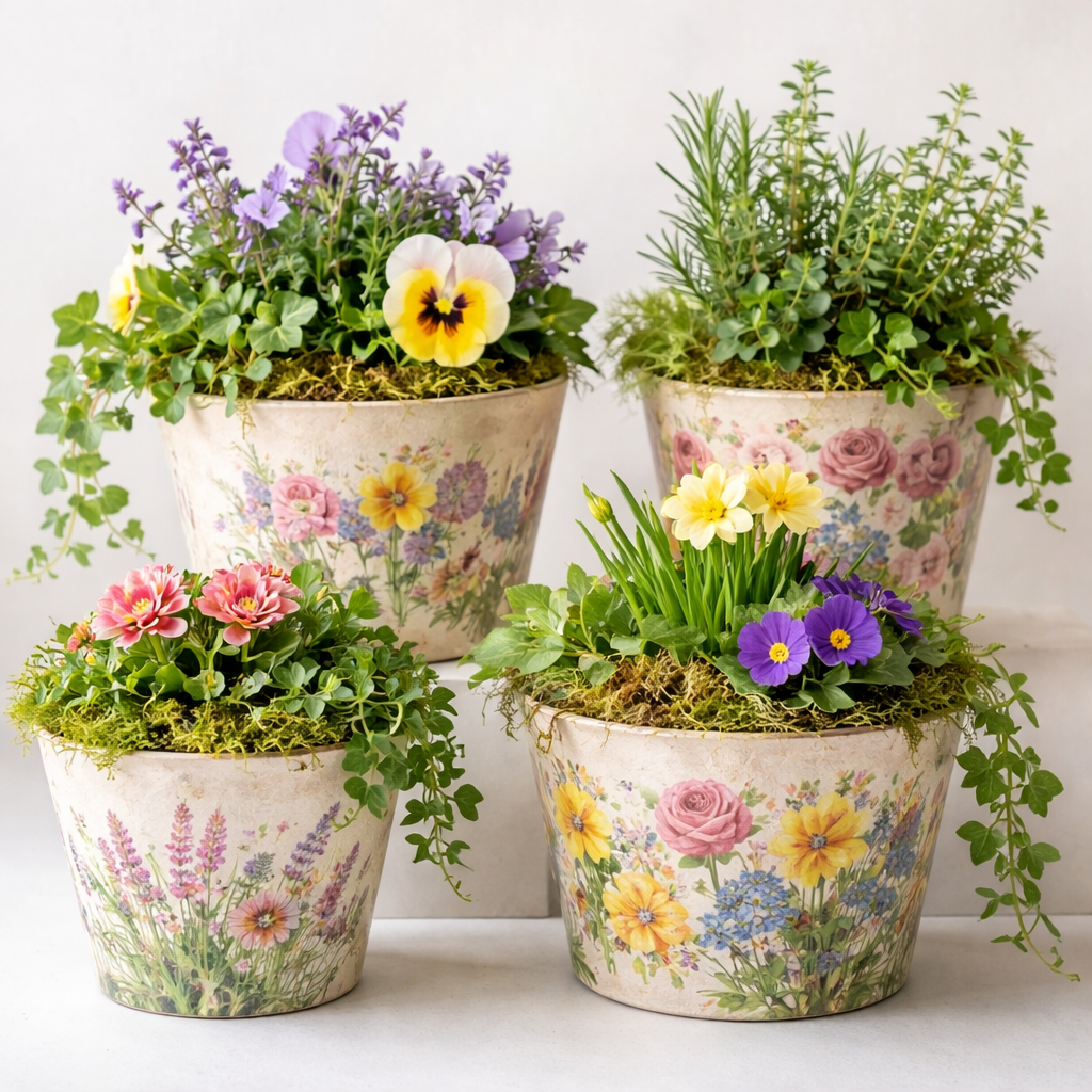 Decoupage a terracotta plant pot and fill with lovely fresh plants.