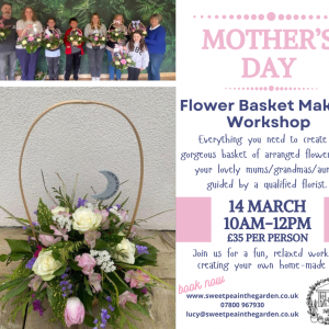 Join us in the cabin for a step by step workshop to create a gorgeous basket of fresh flowers and foliage to give as your gift on Mothers Day (or…